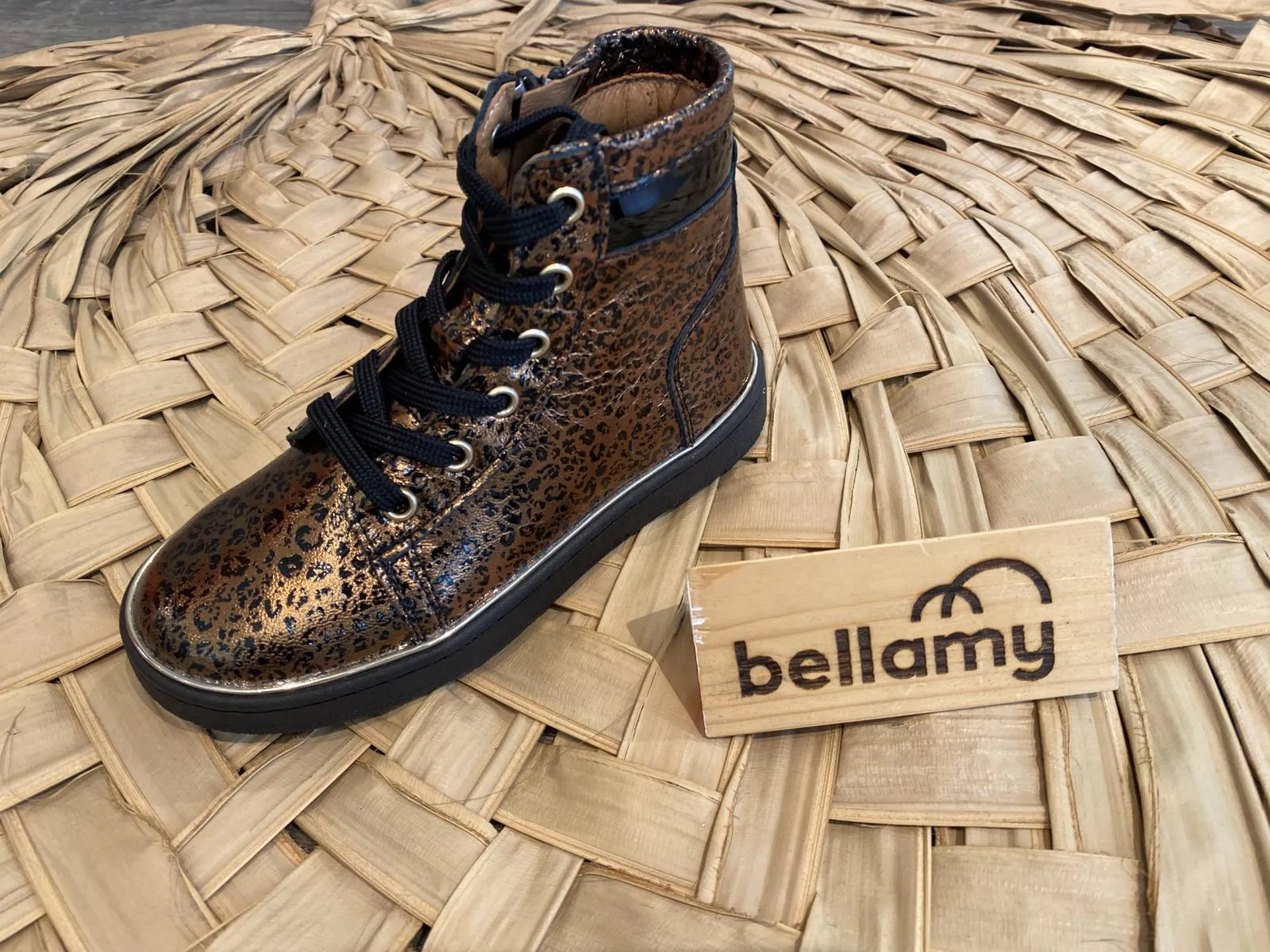 Afin de donner un côté rock à une tenue simple, ces chaussures montantes s'enfilent et se retirent grâce à une fermeture zip et peut s'ajuster grâce aux lacets.