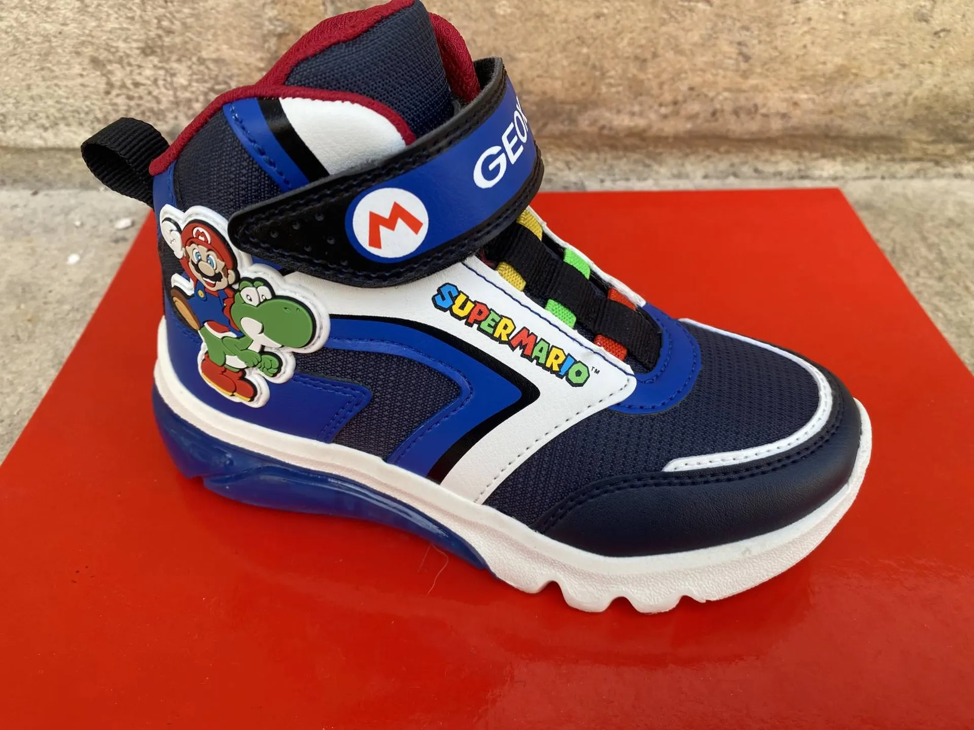 Choisissez les baskets GEOX Super Mario pour enfants, des chaussures colorées avec lumières qui allient confort et amusement avec leurs personnages .